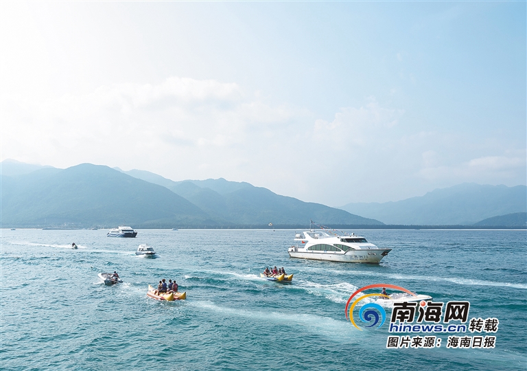 在陵水分界洲島旅游區(qū),各種海上游樂項(xiàng)目受到游客青睞。 武昊 攝