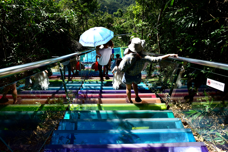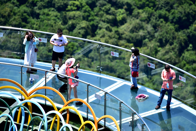 炎炎夏日,游客在亞龍灣熱帶天堂景區(qū)體驗(yàn)熱帶雨林清涼之旅