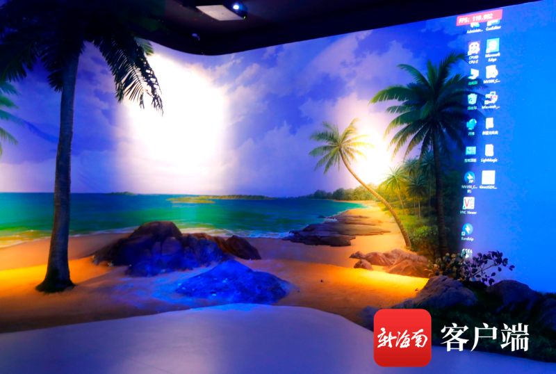“誤入仙境——瓊崖歷史風俗巡禮(數字館)”以數字化手段還原黎族先民的生活、生產、交易場景,包括對歌擇偶、采藤、采香、漁獵、傳信等內容。記者 汪承賢 攝