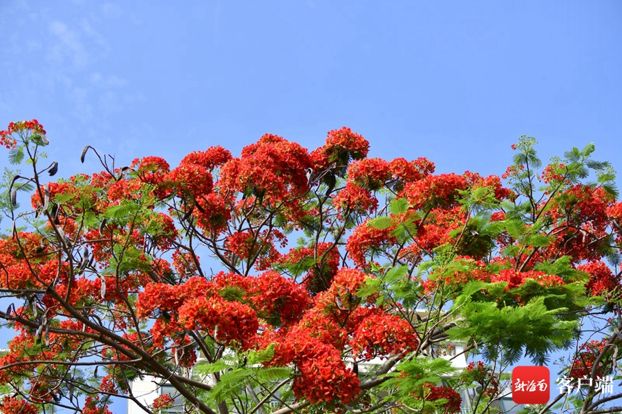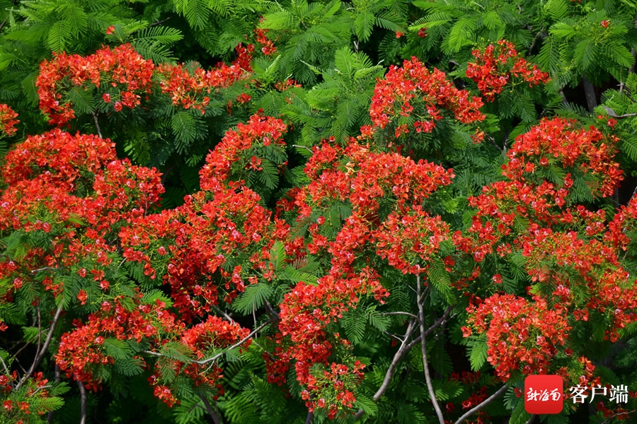 近日,記者在海口街頭拍到黃色的鳳凰花,這棵鳳凰樹所開的鳳凰花和平日所見的鳳凰花不同,它既有紅色,也有黃色。現在正值鳳凰花盛花期,常有小鳥和松鼠在樹上棲息。