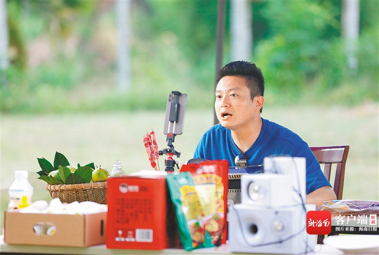 抖音達人“瓊斯愛生活”在直播間向粉絲推薦海墾和牛等農產品。 海南日報記者 袁琛 攝