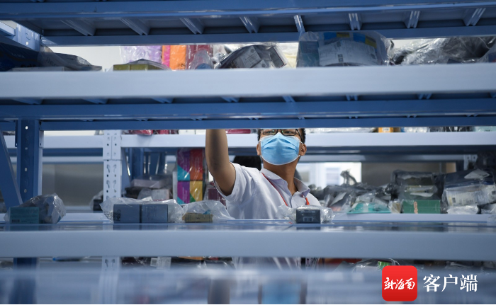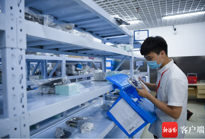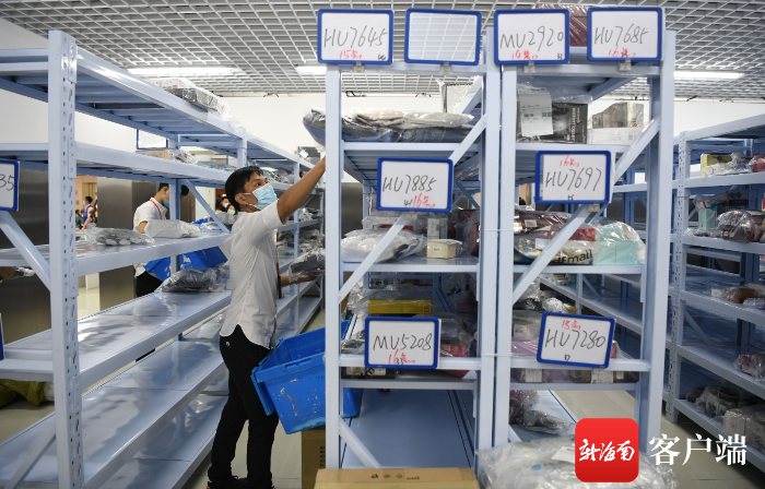 7月10日,三亞鳳凰國際機場新增的免稅提貨點啟用,工作人員在清點免稅商品。記者沙曉峰攝