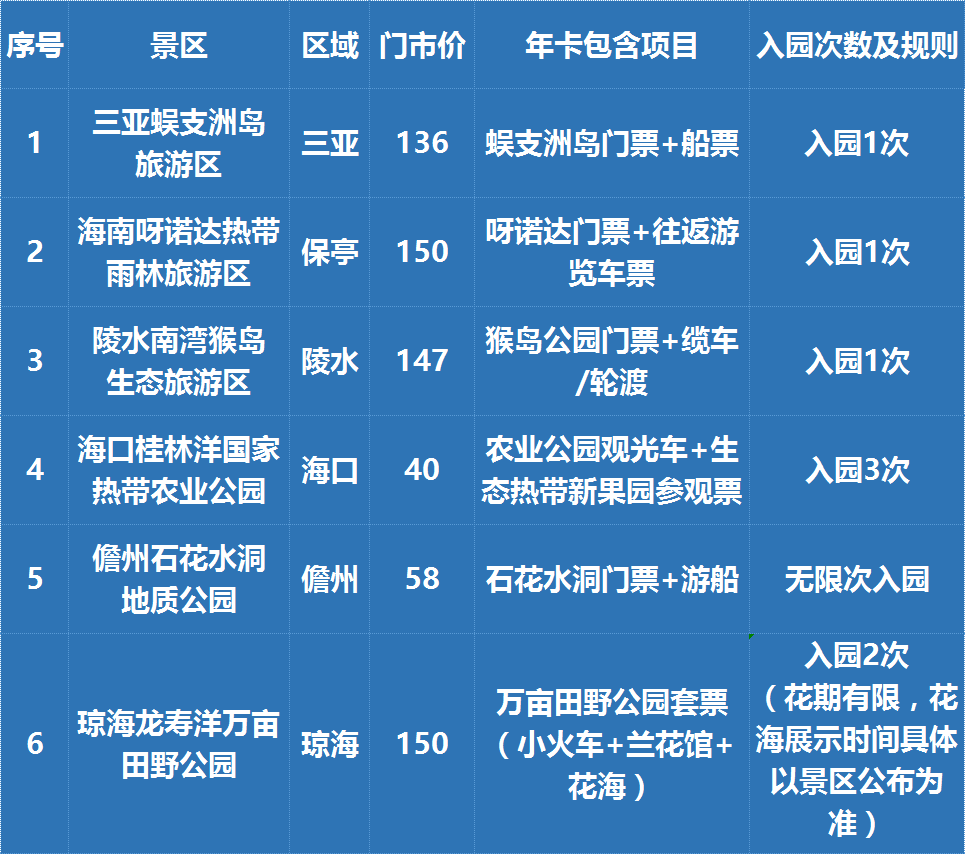 附海南旅游年卡游玩攻略: