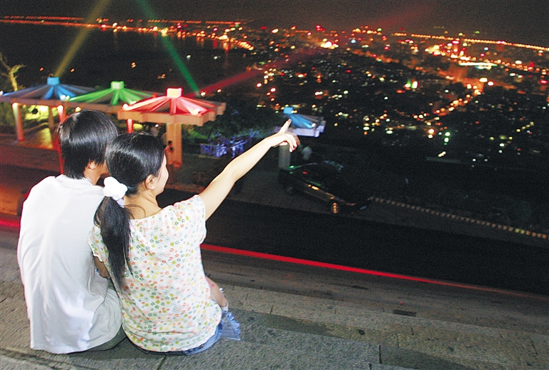 市民在鹿回頭山頂賞夜景。海南日報記者 張杰 攝