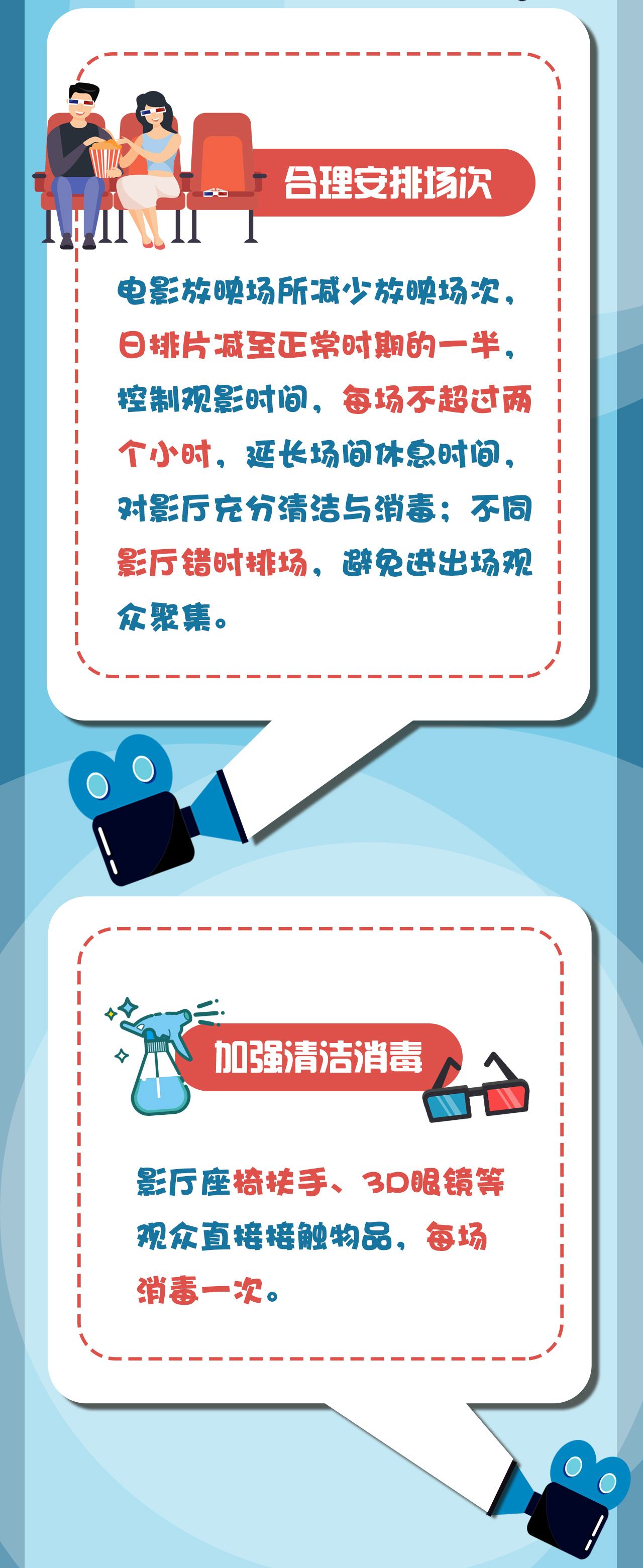 此外,《防控指南》還要求,進入影院區域的工作人員和觀眾必須全程佩戴口罩,對號入座,未戴口罩和體溫37.3度以上者不得進入。實行交叉隔座售票,保證陌生觀眾間距1米以上;每場上座率不得超過30%。