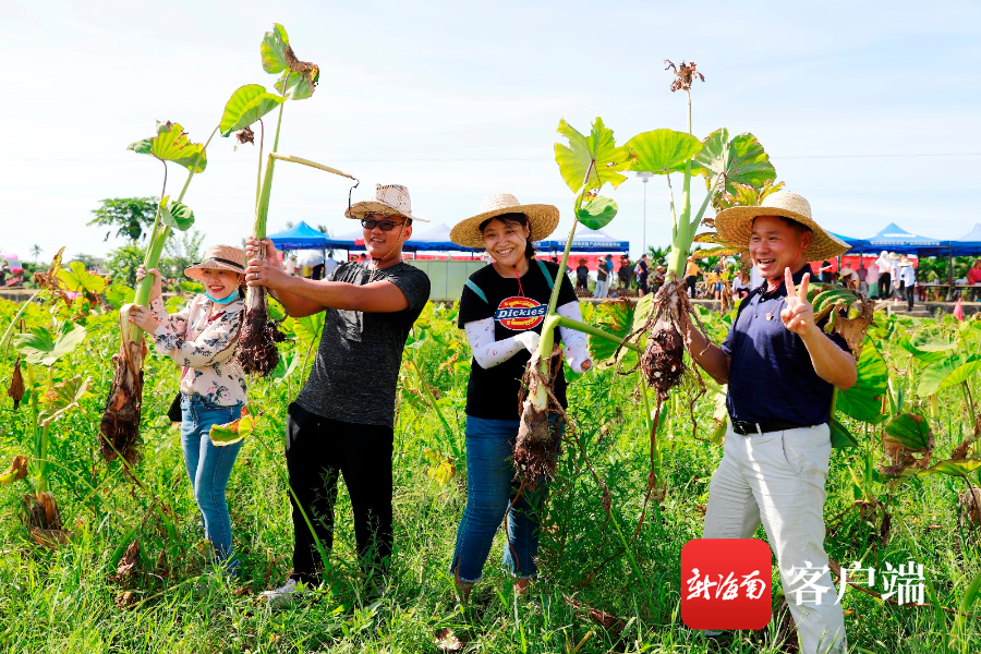 在香芋采摘區,嘉賓和游客們頂著烈日,個個摩拳擦掌,在香芋種植地里穿梭,試圖挑選最大的香芋采摘,整個采摘區夾雜著嬉鬧聲,現場一片歡聲笑語、熱鬧非凡。
