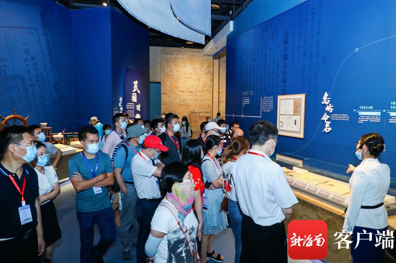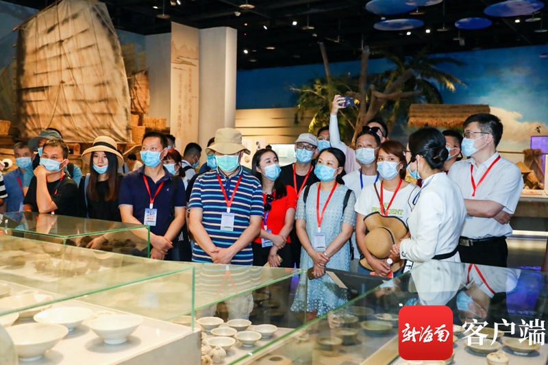 7月26日上午,“天然氧吧 健康海南”——2020全國抗疫英雄海南行暨海南自由貿易港全國重點網媒推介活動的抗疫英雄和媒體記者們走進中國(海南)南海博物館。記者 李昊 攝