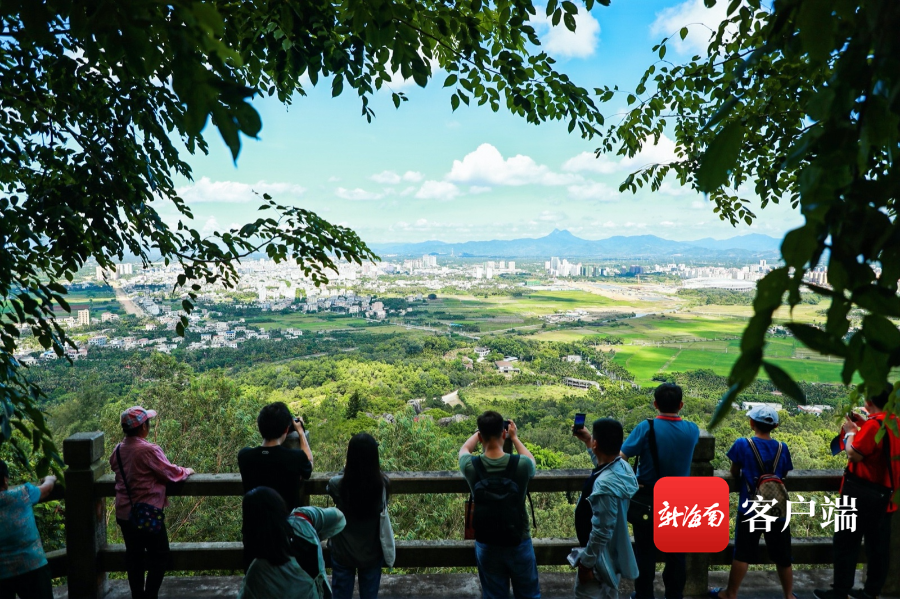 游客從東山嶺山上俯瞰萬寧市區。記者 李昊 攝