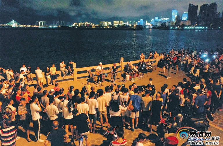 音樂(lè)舞蹈愛(ài)好者們匯聚海口灣,為市民獻(xiàn)藝,成為一道獨(dú)特的風(fēng)景線。