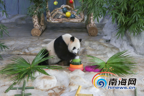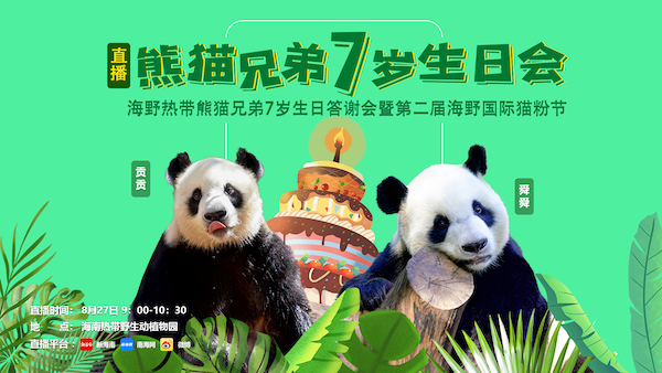 2019年8月18日,海南熱帶野生動(dòng)植物園(簡稱海野)為大熊貓貢貢、舜舜兄弟舉辦6歲生日活動(dòng)暨海野國際貓粉日,這是從四川遠(yuǎn)道而來的兩只國寶大熊貓貢貢、舜舜迎來了在海南度過的第一個(gè)生日。