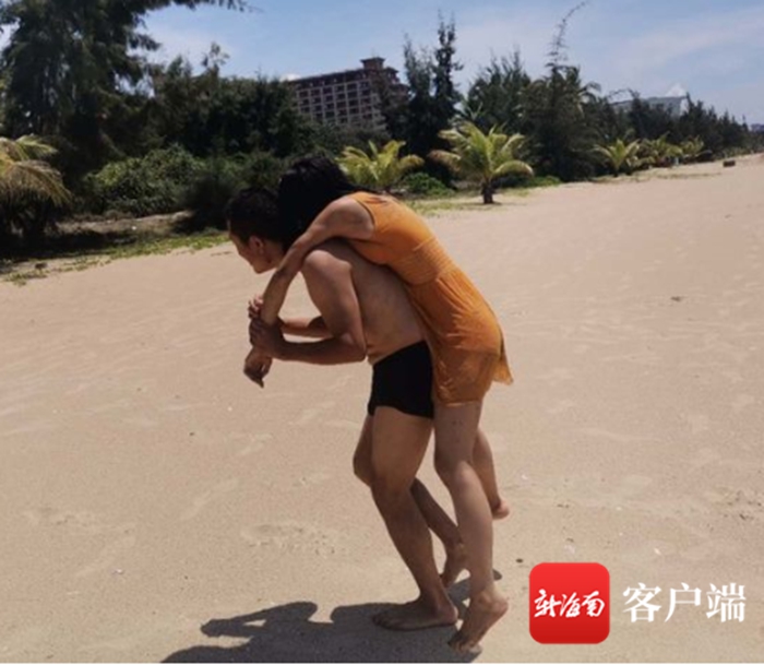 三亞市公安局天涯分局三亞灣派出所路管員許芮和盧雨果接到指令后,立即趕到現場,許芮迅速脫下警服沖進海里救人,并成功將張先生女友救上岸。