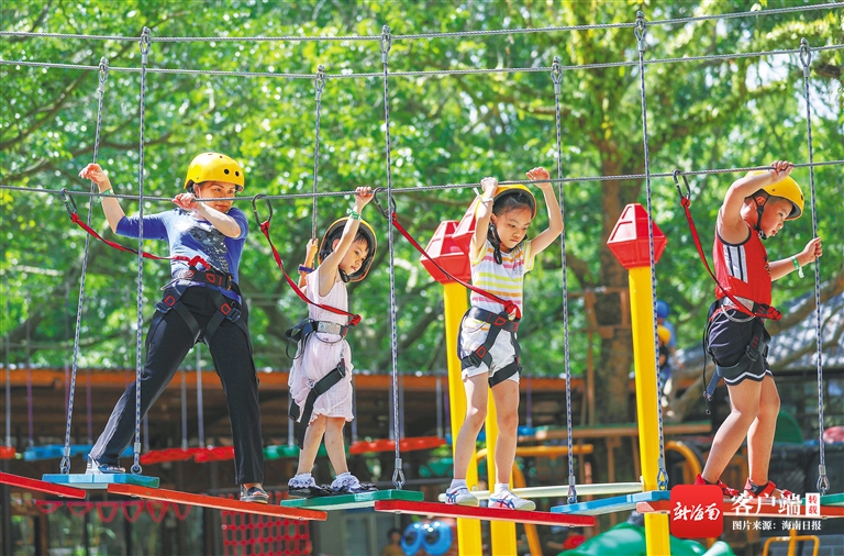 9月13日,游客在海口火山口公園內的親子兒童樂園游玩。