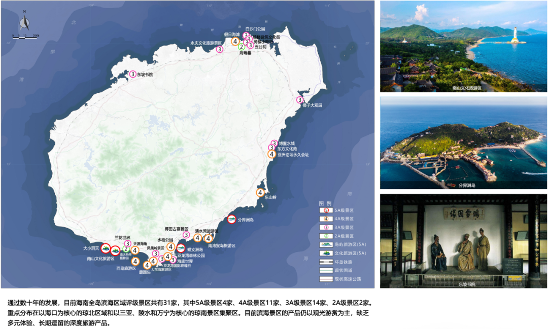 項(xiàng)目主線長(zhǎng)997.9公里,連接線長(zhǎng)442.7公里,貫穿海口、文昌、瓊海、萬寧、陵水、三亞、樂東、東方、昌江、儋州、臨高、澄邁沿海12個(gè)市縣和洋浦經(jīng)濟(jì)開發(fā)區(qū),有機(jī)串聯(lián)沿途約9類84段景觀區(qū)域、22個(gè)濱海岬角、25座燈塔、68個(gè)特色海灣、26個(gè)濱海潟湖、16片紅樹林、40個(gè)驛站、31家A級(jí)以上景區(qū)、21處旅游度假區(qū)、261處濱海名勝古跡。