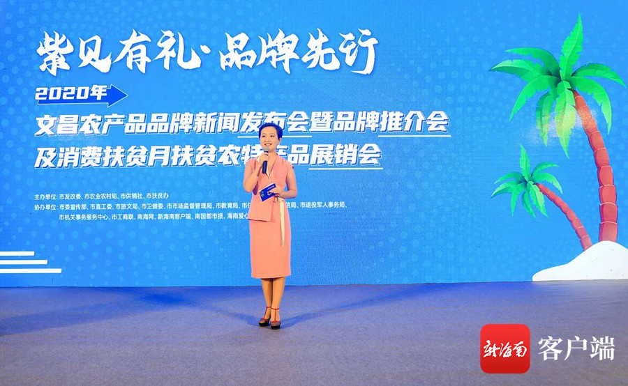 9月26日上午,紫貝有禮·品牌先行——2020年文昌農產品品牌新聞發布會暨品牌推介會及消費扶貧月扶貧農特產品展銷會在文昌金石國際大酒店舉行。(活動主辦方供圖)