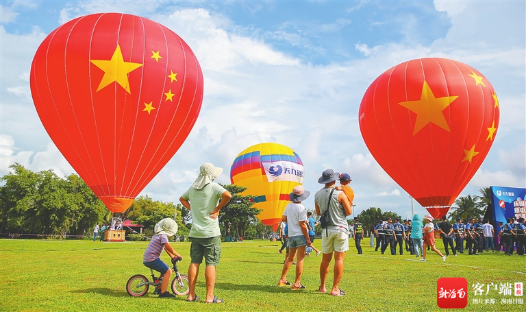 當天上午,在海口萬綠園,海口市民鄒文和朋友一同“飛”到了空中,載著她們的是新鮮感十足的熱氣球。在熱氣球上俯瞰海口,迷人的椰城風光盡收眼底、一覽無遺。一個個五彩斑斕的巨大熱氣球從草坪上徐徐上升,熱氣球里不時傳來陣陣尖叫和嬉笑聲,地面上也有不少市民游客駐足圍觀、躍躍欲試。“幾年沒來,海口真是越來越洋氣,越來越好玩了。”有游客說。