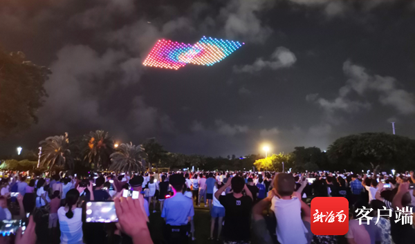 無(wú)人機(jī)表演點(diǎn)亮椰城夜空。(一飛智控 供圖)