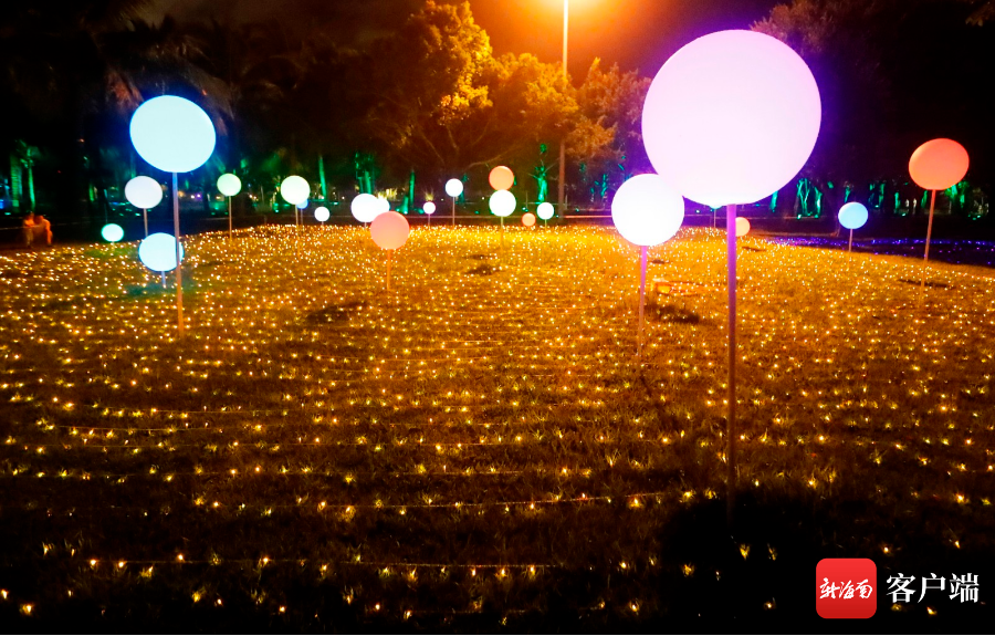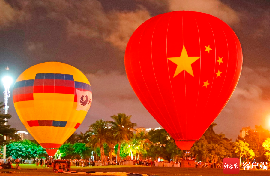 活動現(xiàn)場,熱氣球上五星紅旗的圖樣清晰展現(xiàn),市民游客紛紛拿出手機、相機,記錄這激動人心的一刻。璀璨奪目的多彩夜景,折射出椰城百姓滿滿的幸福。