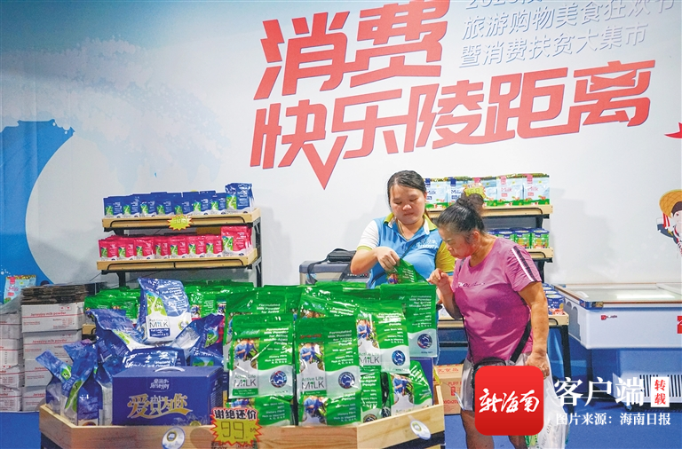 陵水旅游購物狂歡節暨消費扶貧大集市活動中,市民游客在選購特色產品。