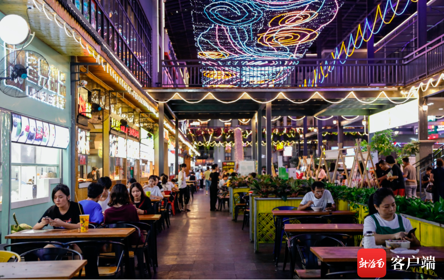 新海南客戶端、南海網(wǎng)、南國都市報10月4日消息(記者 杜倬荷)入夜時分,來到位于海口市秀英區(qū)的尋嘗里,仿佛穿越到一個色彩斑斕的都市桃源。以夢幻的燈光為伴,穿過高大中空的通道,陣陣“穿堂風”襲來,給食肆檔口的客人帶來絲絲愜意與安然。人們在這里推杯換盞、品嘗美食,細品著海口這座濱海城市獨特的文化魅力。在8天“超級黃金周”里,卸下一身繁忙與疲累,讓尋嘗里帶你赴一場“夜市江湖”。