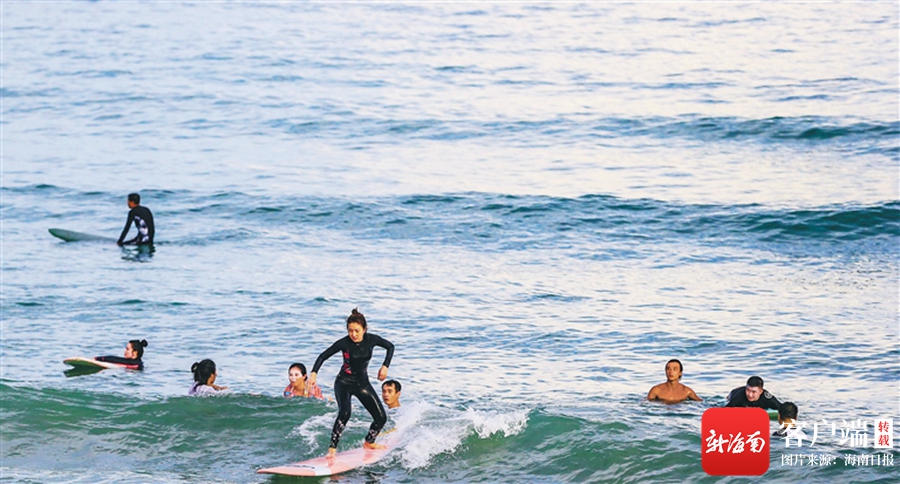 10月2日,游客在萬寧日月灣沖浪。海南日報記者 張茂 攝