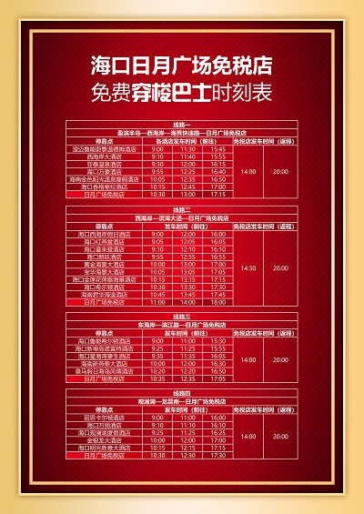 海口日月廣場免稅店巴士時刻表。鐘縷南供圖
