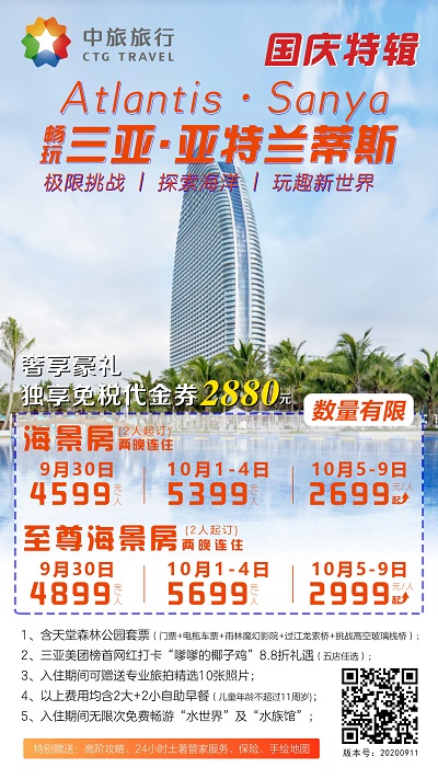 中秋國慶佳節至,假期去哪玩?中國旅游集團海南總部推出各類優惠活動,誠意滿滿邀您共游海南,賞月下山河,享天倫之樂。