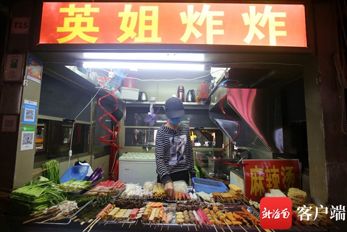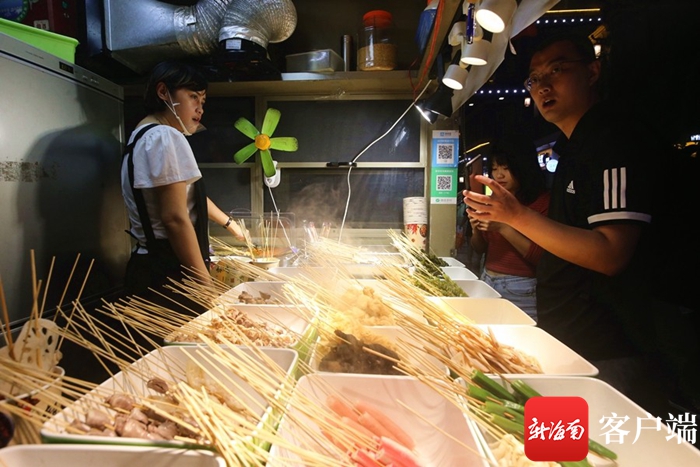 小龍蝦、烤串、甘梅地瓜、花甲、鍋貼、糟粕醋、臭豆腐......夜幕降臨,位于海口市瓊山區忠介路邊的福地美食街內香味四溢,人聲鼎沸。大眾評審團行走在夜市間,從南到北,酸甜苦辣咸等各色美食應有盡有。既有傳統海南美食經典味道,又有全國各地特色美食。