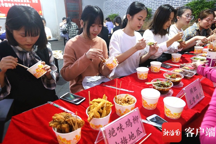 當天晚上,大眾評審團對瓊臺福地美食街的英姐炸炸、極味缽缽雞、蠔氣沖天、御膳壇子雞等4家店鋪的特色美食進行試吃打分。“我比較喜歡吃英姐炸炸,因為該店是該夜市網紅店。”大眾評審團成員歐女士說,該店的炸炸火候掌握得很好,口感特別好。