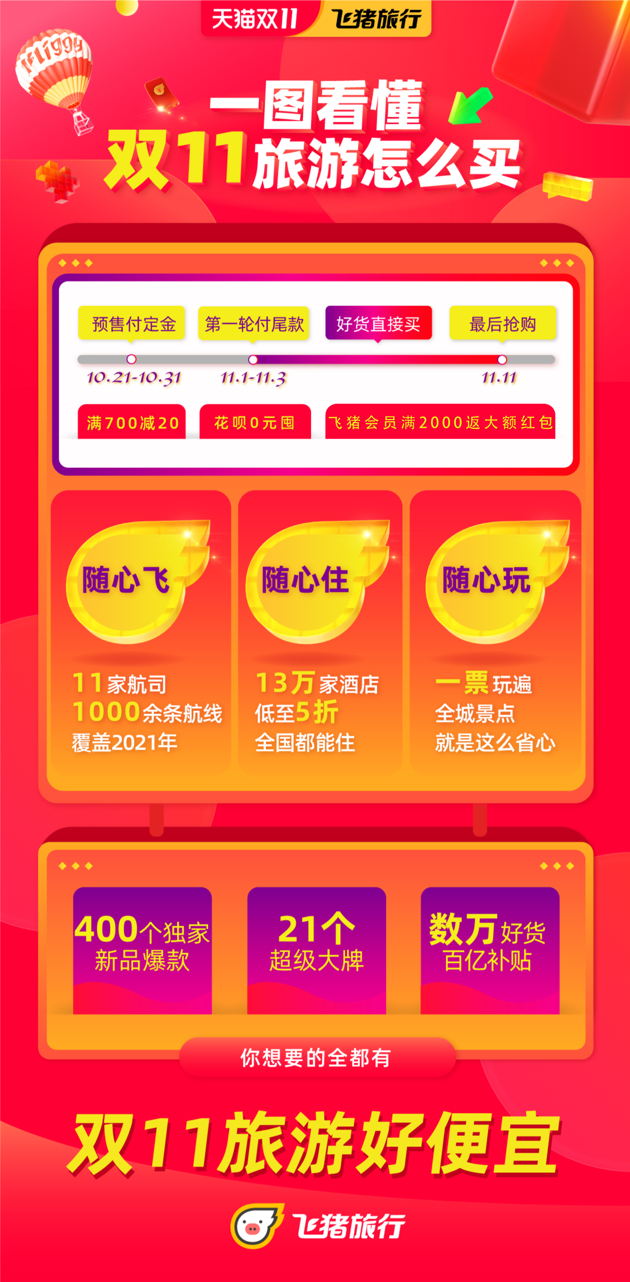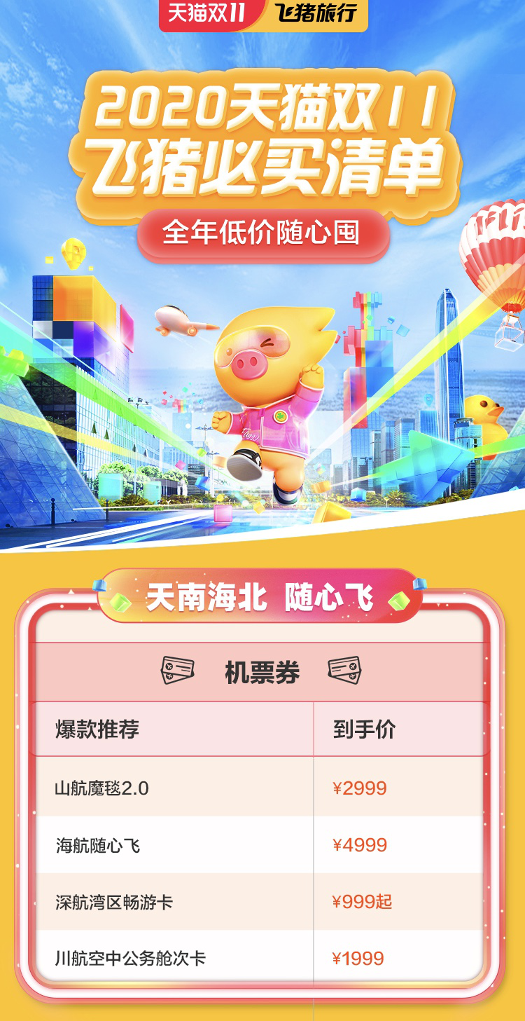 隨心飛隨心住隨心玩都來了!天貓雙11旅游好貨全在飛豬
