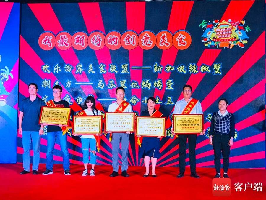 晚會現場,組委會對本次活動中最具人氣夜市、最具文化氣息夜市、夜市必吃榜、我最期待的創意美食等獲獎夜市及夜市美食進行頒獎。其中,金盤夜市獲得“最具人氣夜市”獎項,潮立方獲得“最具文化氣息夜市”獎項,此外還有10款美食榮登“夜市必吃榜”,5款美食榮獲“我最期待的創意美食”稱號。堪稱現場版的海口夜市“米其林指南”。