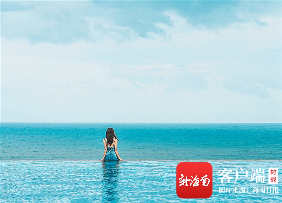 游客在酒店無邊泳池拍照打卡。(海棠灣威斯汀酒店供圖)