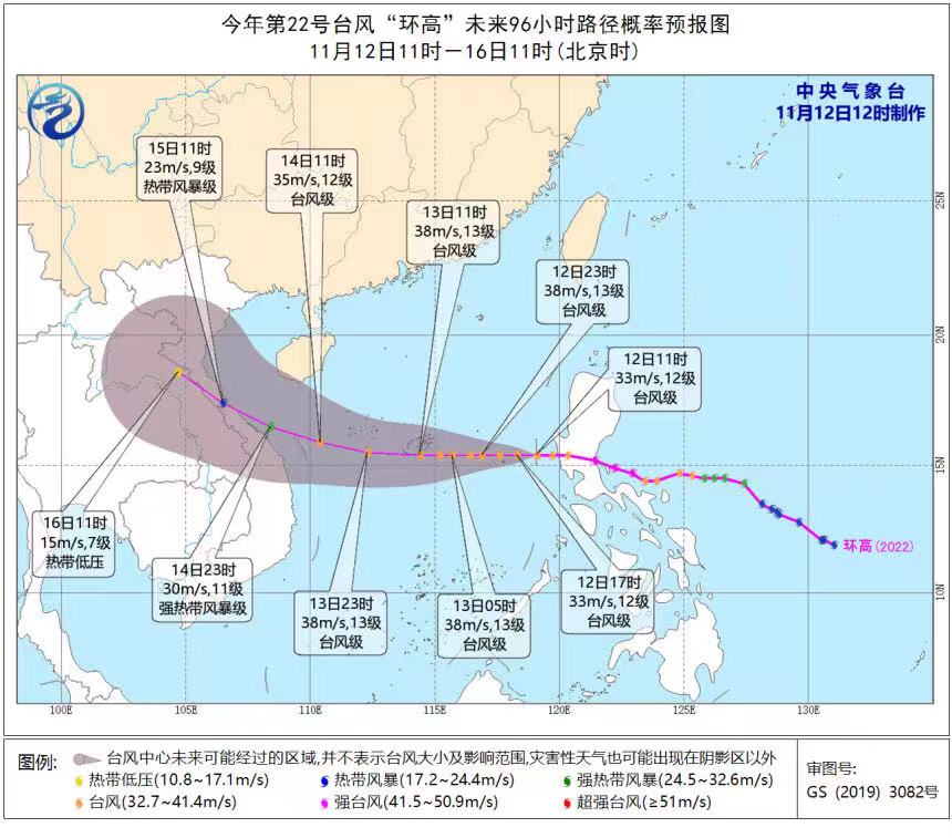 臺風“環高”11月12日11時預報路徑圖