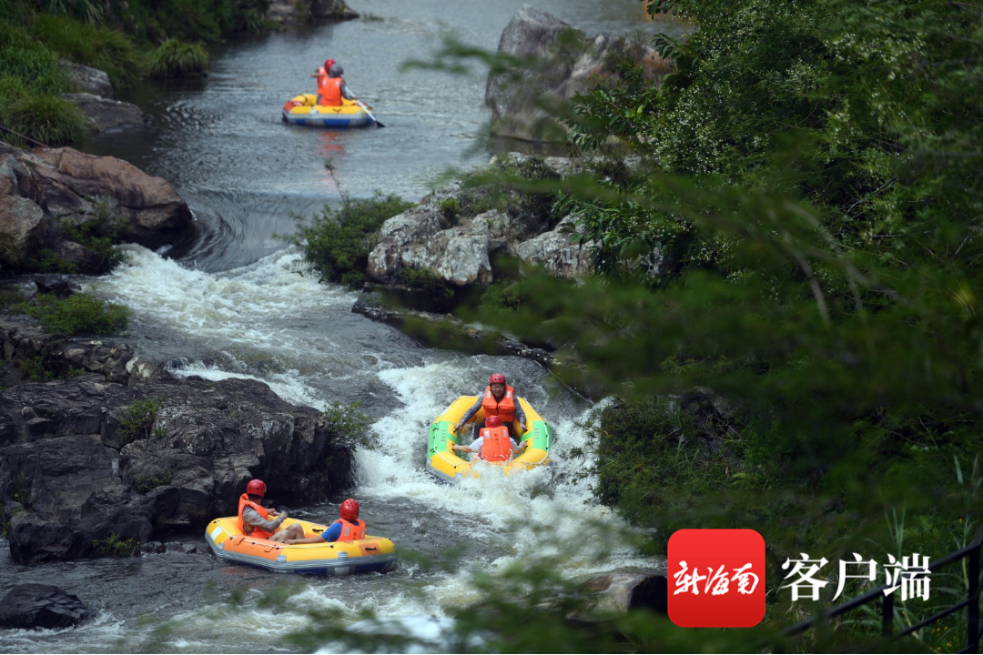 游客在五指山紅峽谷體驗漂流。記者沙曉峰攝