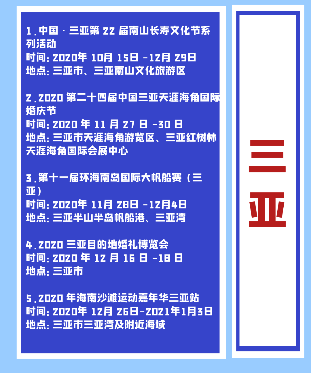 20日上午9點和晚上8點,新海南客戶端、南海網、南國都市報將開啟兩場直播,早上帶你逛2020年(第五屆)海南世界休閑旅游博覽會、2020年(第六屆)海南國際旅游美食博覽會、2020年海南國際旅游裝備博覽會三大展會,晚上帶你見證2020年海南國際旅游島歡樂節正式開幕。