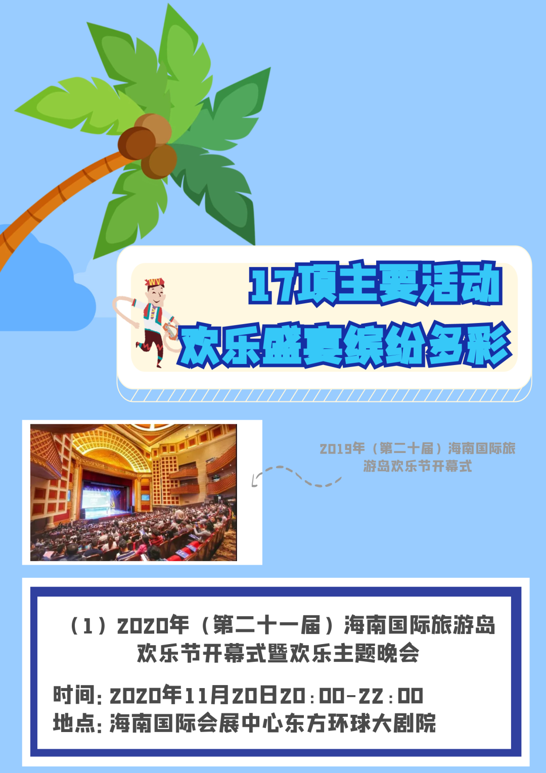 新海南客戶端、南海網、南國都市報11月19日消息(記者鐘圓圓)一年一度的海南國際旅游島歡樂節來咯!11月20日,2020年海南國際旅游島歡樂節將正式啟幕。整個活動將持續至12月31日,來海南,帶你暢玩一個月。