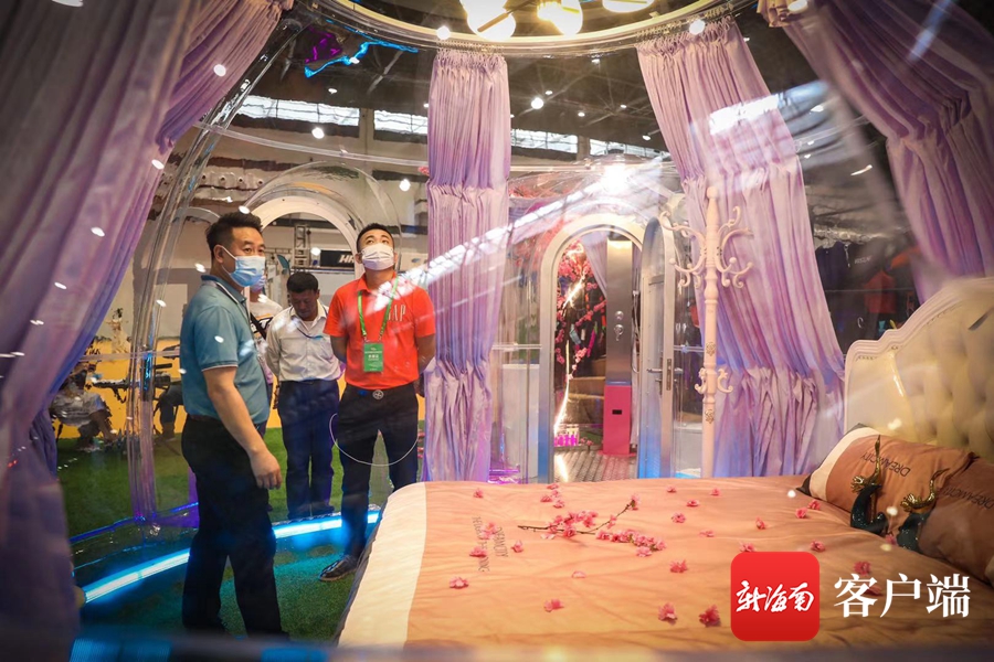 新海南客戶端、南海網、南國都市報11月20日消息(記者 任桐)主臥直徑4米,衛生間直徑2米,1.8米舒適大床……酒店配套一應俱全。這個就是11月20日亮相2020年海南國際旅游裝備博覽會的360度全透明星空房。其全透明的設計,較高的顏值,倍受參展觀眾關注。