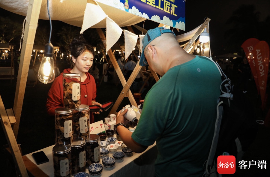 “卡路里工匠匯”區(qū)域設置了特色攤點,在這里,人們不僅可以看到海墾廣場招商洽談宣傳,還可以看到海南免稅店的產品展示,甚至能看到海南一村一品發(fā)展研究會帶來的海南特色農產品。