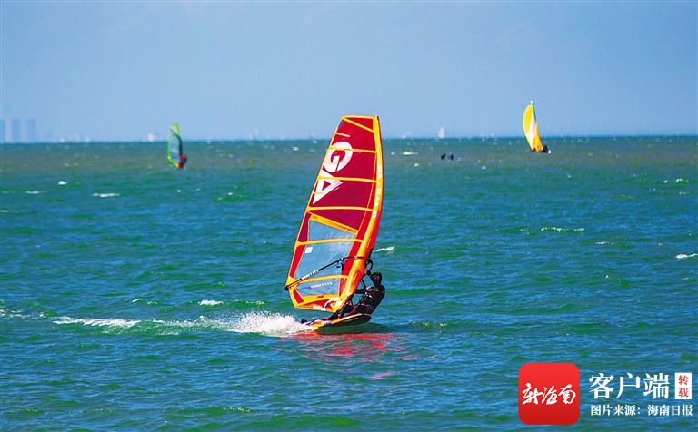 碧波萬頃的海面上,船影點點、桅帆林立,急速行駛的帆板正馭風破浪前行。今年國慶期間,來自上海的游客劉源陽和帆友在海上乘風破浪,體驗了一把出海的快感?!昂?谖骱0稉碛谢匕讹L,自然條件優(yōu)越,非常適合帆板運動?!眲⒃搓栒f。