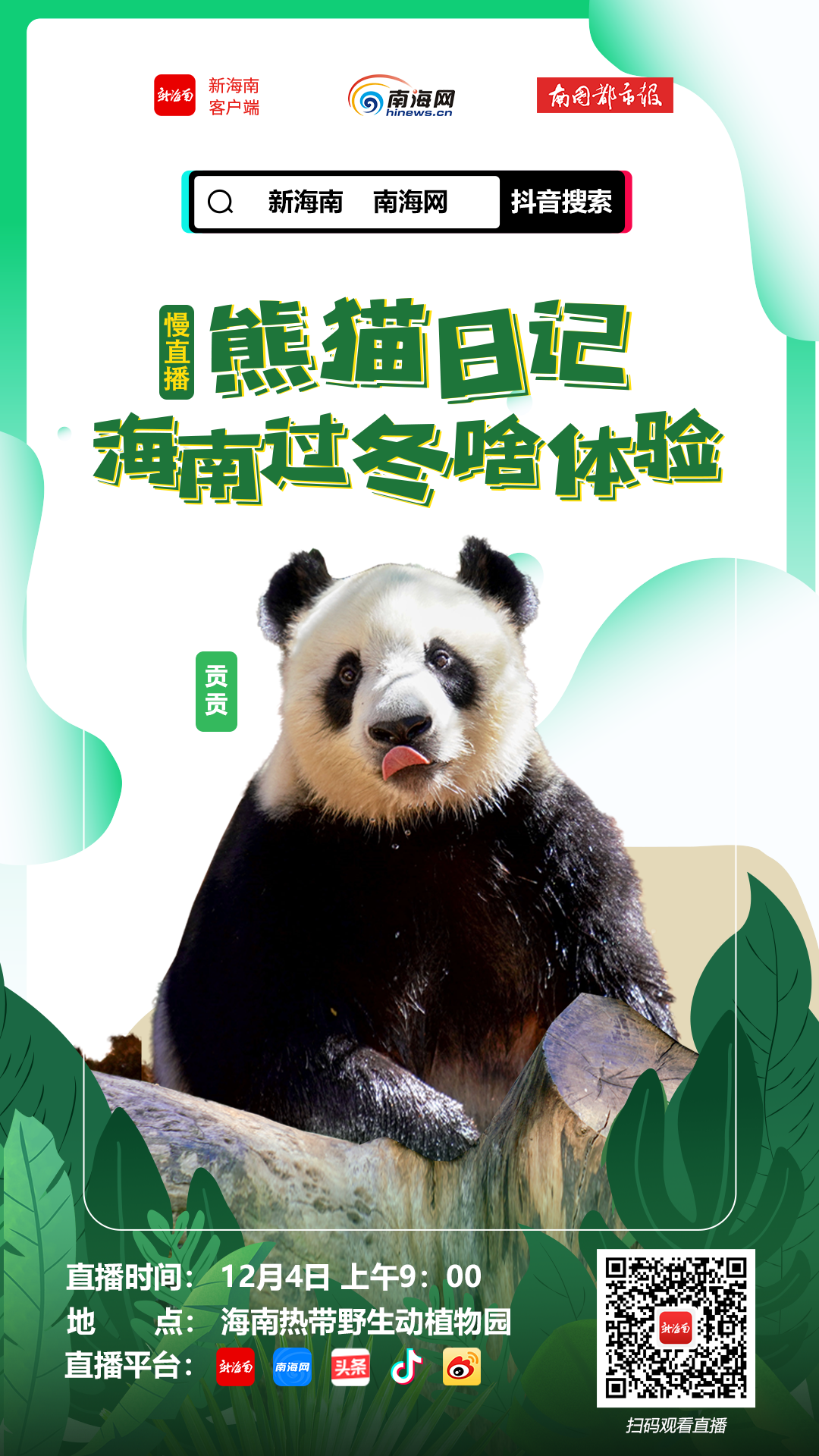 12月4日上午9點,歡迎關注新海南客戶端、南海網、今日頭條、抖音、微博直播間,參與直播,一起走進“熊貓世界”。