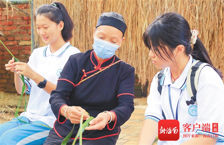 12月14日,海南中學(xué)三亞學(xué)校組織學(xué)生到海南檳榔谷黎苗文化旅游區(qū)開展研學(xué)旅行,學(xué)生們在黎族阿婆的指導(dǎo)下學(xué)習(xí)黎族藤編。海南日報(bào)記者 武威 通訊員 潘達(dá)強(qiáng) 圖/文