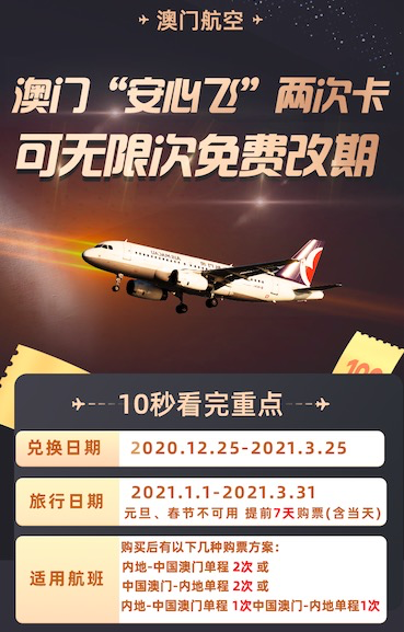 新海南客戶端、南海網、南國都市報12月18日消息(記者 吳興)隨著跨年時間的臨近,旅游業將迎來新的黃金期。作為年內唯一開放的出境游目的地,澳門成為不少人的跨年選擇。近日,飛豬聯合澳門航空等在機票“買一送一”基礎上,優惠力度再加碼,推出了機票折上立減活動。同時,飛豬“隨心飛”機票首次新增澳門專線,再次拉低內地游客去澳門旅游的成本。