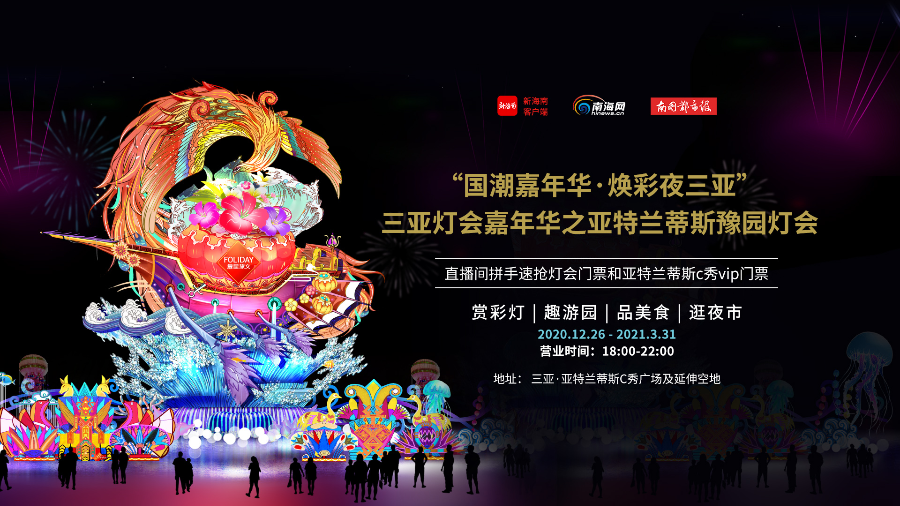 新海南客戶端、南海網(wǎng)、南國都市報12月25日消息(記者 譚琦)12月26日18時,“國潮嘉年華·煥彩夜三亞”三亞燈會嘉年華之亞特蘭蒂斯豫園燈會將正式開幕,新海南客戶端、南海網(wǎng)、南國都市報將在多平臺進(jìn)行現(xiàn)場直播,帶大家觀彩燈、趣游園、品美食、逛夜市。在南國都市報、南海網(wǎng)的抖音直播間中,還將送出多張燈會門票和亞特蘭蒂斯C秀的VIP門票,敬請關(guān)注。