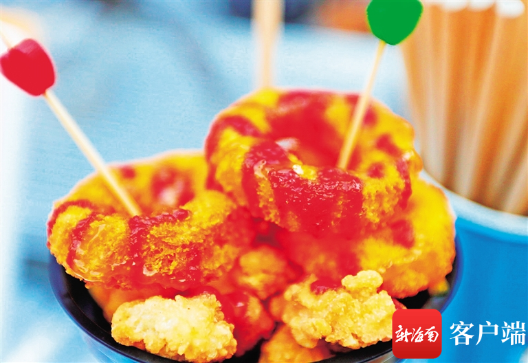 “這是芒果腸粉,這叫甜薯甩,都是瓊海涼爽系列。”12月30日下午,海口天氣雖然降溫了,但仍然是暖陽天。在海口市金龍路上邦百匯城廣場,數(shù)十個小吃展位前匯集了眾多食客,展位經(jīng)營者一邊忙著加工小吃美食,一邊給客人介紹著瓊海的特色小吃。