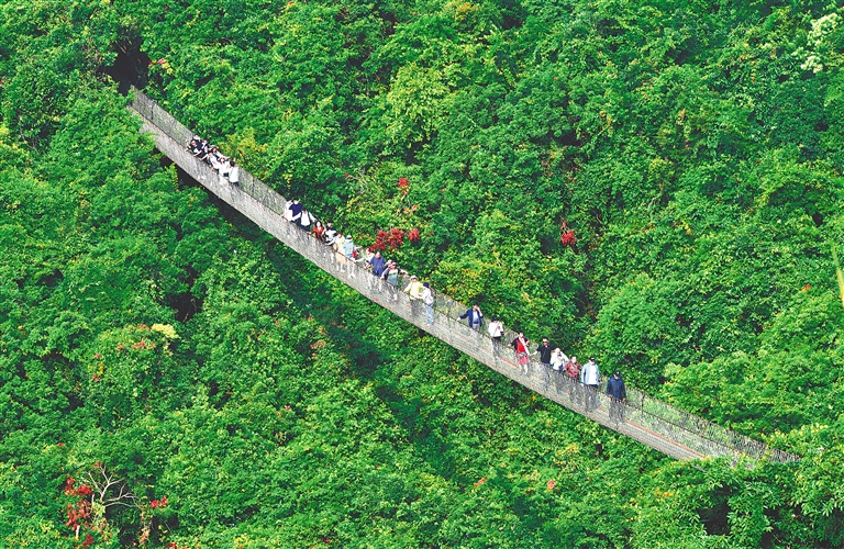 1月2日,游客在三亞亞龍灣熱帶天堂森林旅游區游覽。 元旦假期第二天,三亞各景區旅客接待量不斷攀升,當天有近萬人次游客在該旅游區體驗雨林風情,飽覽奇花美景。海南日報記者 武威 通訊員 黃慶優 圖/文