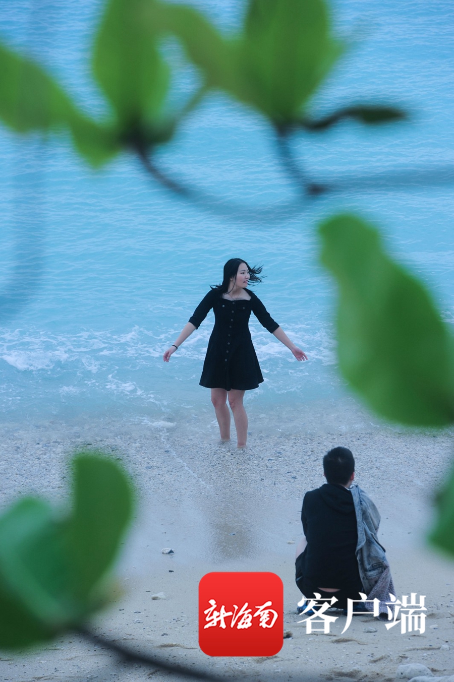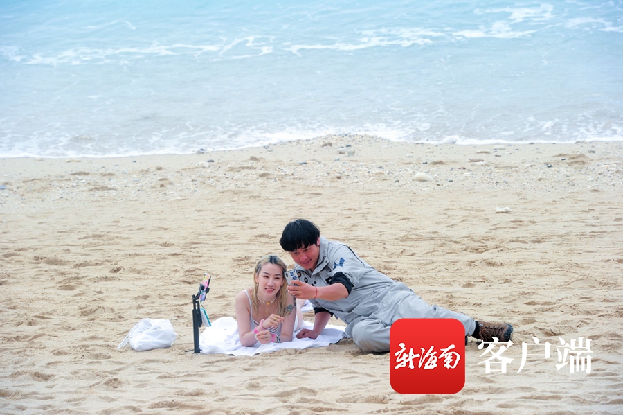 1月3日,三亞,游客在海灘上合影。記者 沙曉峰攝