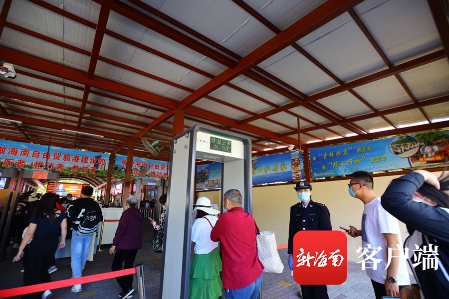 1月3日,三亞南山景區,游客通過電子體溫測量處。記者 沙曉峰 通訊員 陳文武攝