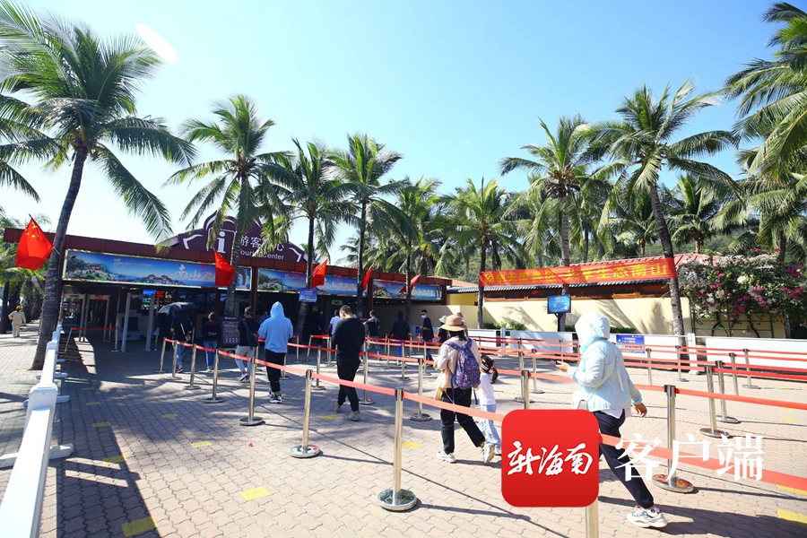 1月3日,三亞南山景區,游客間隔一米排隊入園。記者 沙曉峰 通訊員 陳文武攝