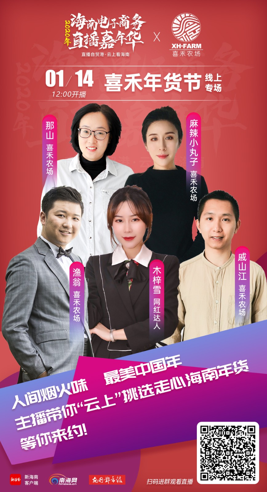 新海南客戶端、南海網、南國都市報 1月13日消息(記者 吳興)春節的腳步越來越近?!斑^大年,辦年貨”,是準備辭舊迎新的開始,濃縮著十足的年味,置辦年貨買些什么?2020年海南電子商務直播嘉年華系列活動——“喜禾線上年貨節”專場直播,將為你帶來海南年貨種草攻略。于1月14日12時開播的“喜禾線上年貨節”,將在直播現場進行海南、杭州兩地連線,向全國網友推薦十幾款精心準備的年節好物,網友還可“云游”位于海南儋州的田園綜合體。此外,直播間內還有無門檻代金券、超值好禮等你領。