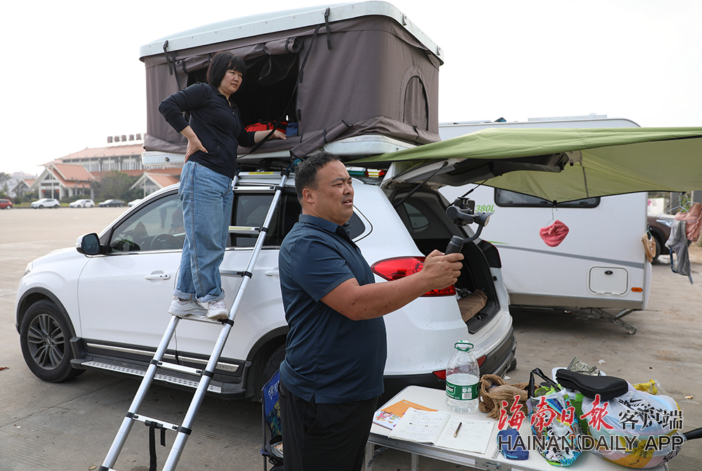 2月16日,在東方市魚鱗洲風景區(qū),車主用視頻記錄自駕生活。通過加裝車載帳篷等方式,普通汽車也可以為駕乘人員提供較完善的生活保障功能。