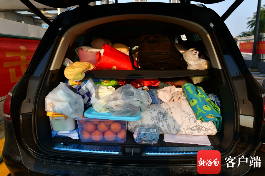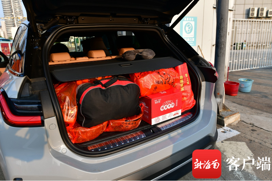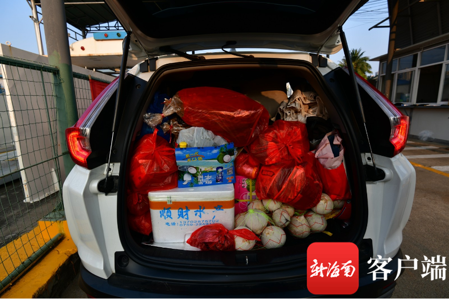 17日,在海口秀英港,返程旅客的后備箱,打開滿滿都是愛。記者 陳衛東攝